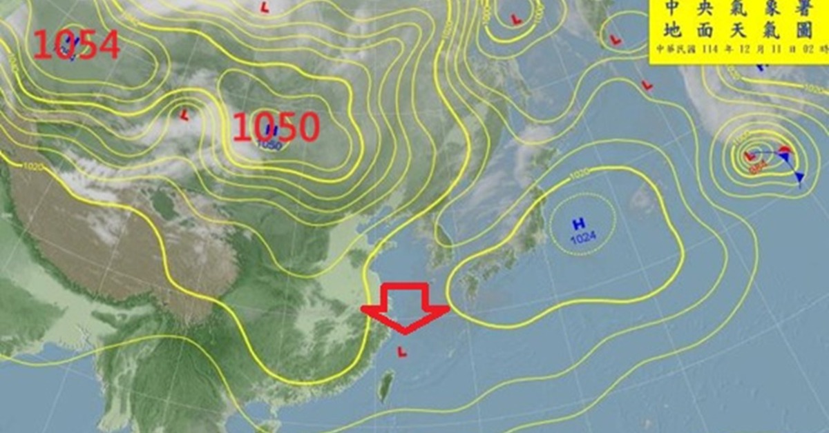 今(11)日上午,受東北季風減弱影響,全台各地氣溫回升,不過到了下午,東北季風稍微增強,迎風面的水氣也隨之增加。前氣象局長鄭明典貼出平均海平面氣壓現況圖表示,週末影響台灣的冷高壓,將帶來一波東北季風增強。