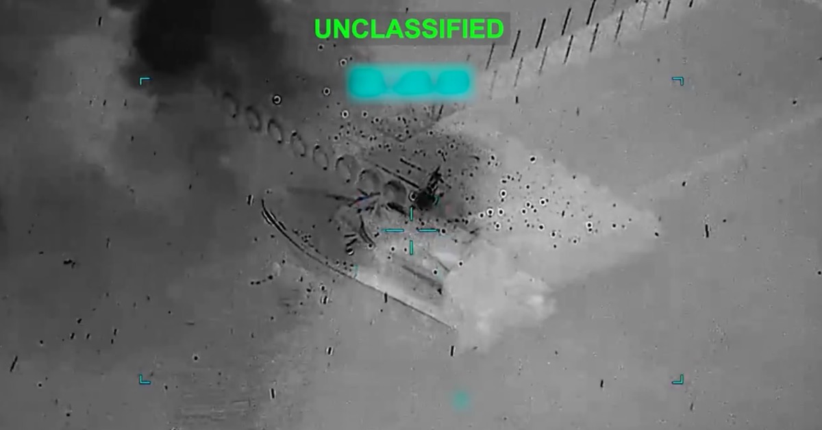 美軍釋出布雷船遭摧毀的影像。(圖/翻攝自X@U.S. Central Command)