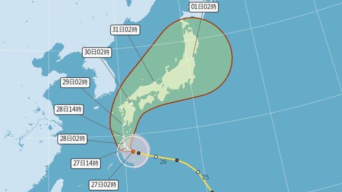 日本氣象廳目前預估,珊珊颱風將在28號升級為非常強烈颱風,29號才登陸九州,比先前預估延後一天,直到31號才會穿越整個日本。由於珊珊颱風速度緩慢、威力強大,將會影響日本長達3天。