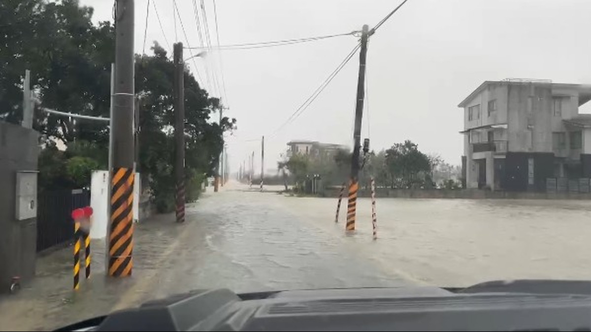 康芮颱風襲台,宜蘭員山鄉七賢村140巷內,水已淹至路面。(圖/東森新聞)