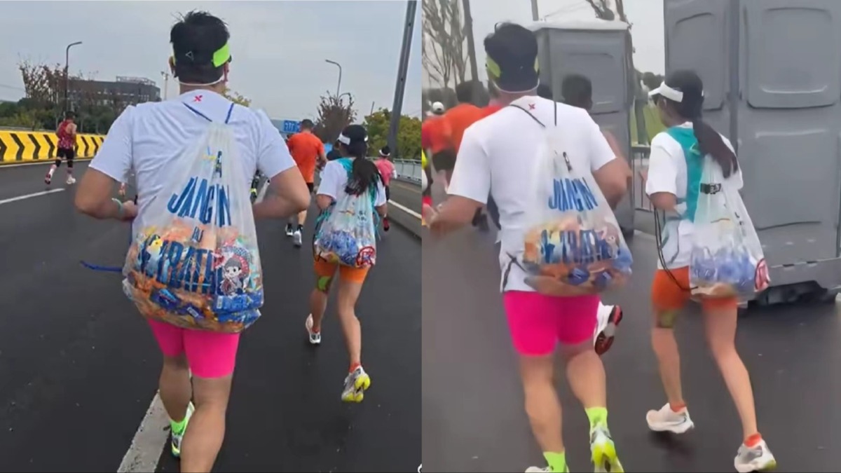 《上遊新聞》報導,蘇州「環太湖1號公路」馬拉松17日鳴槍開跑,本次賽事設全程馬拉松(42.195公里)、半程馬拉松(21.0975公里)、迷你健康跑(4.5公里)3個項目,共吸引約3萬人報名參賽。比賽過程中,有參賽者發現一男一女竟把賽事主辦方免費提供的能量膠全部拿走,裝在背包內繼續參賽。