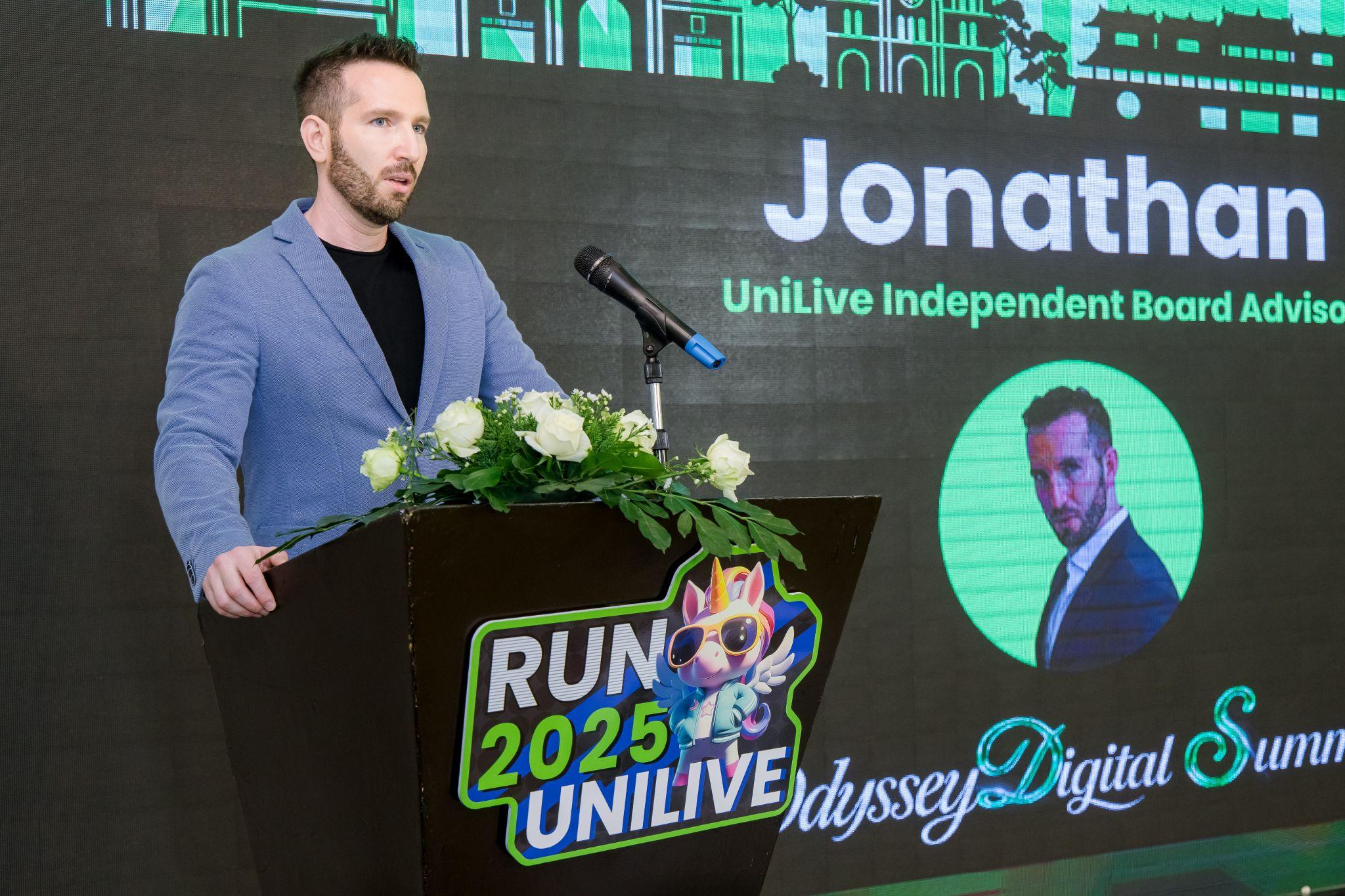 UniLive獨立董事顧問Jonathan隨後登台,發表了充滿啟發的開場致辭演講,圍繞“用戶主權、價值回歸”分享了Web3的核心價值觀,並對UniLive在構建開放生態、推動內容價值重塑上的佈局與成果給予高度評價。