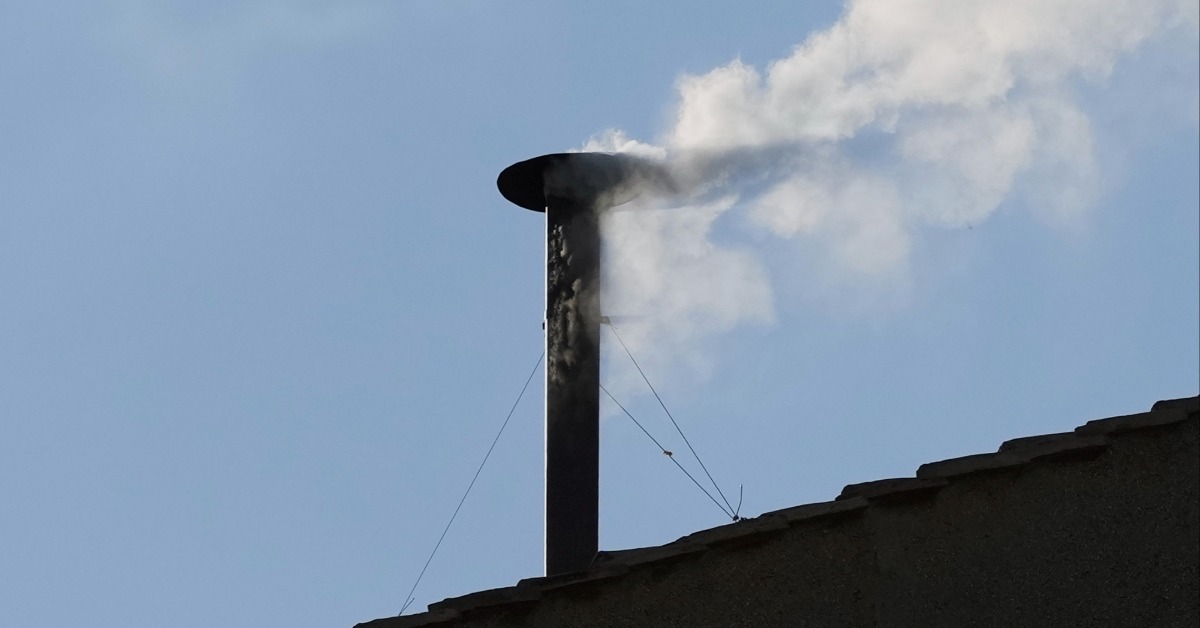梵蒂岡西斯汀教堂的煙囪冒出白煙,133位樞機主教正在第二天的選舉秘密會議中,投票選出已故教宗方濟各的繼任者。(圖/美聯社)