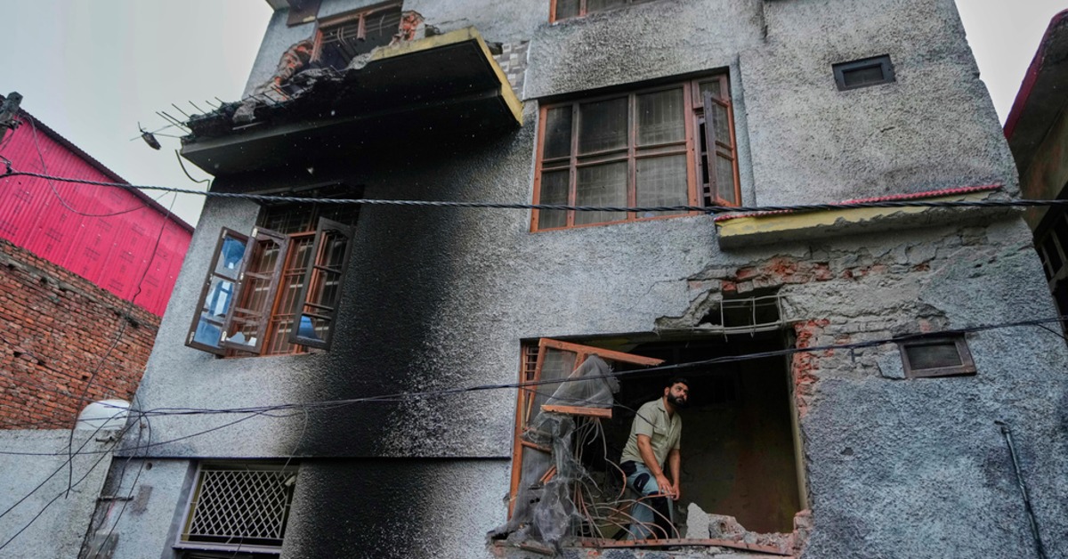 印度控制的克什米爾一處房屋遭到巴基斯坦無人機攻擊。(圖/美聯社)