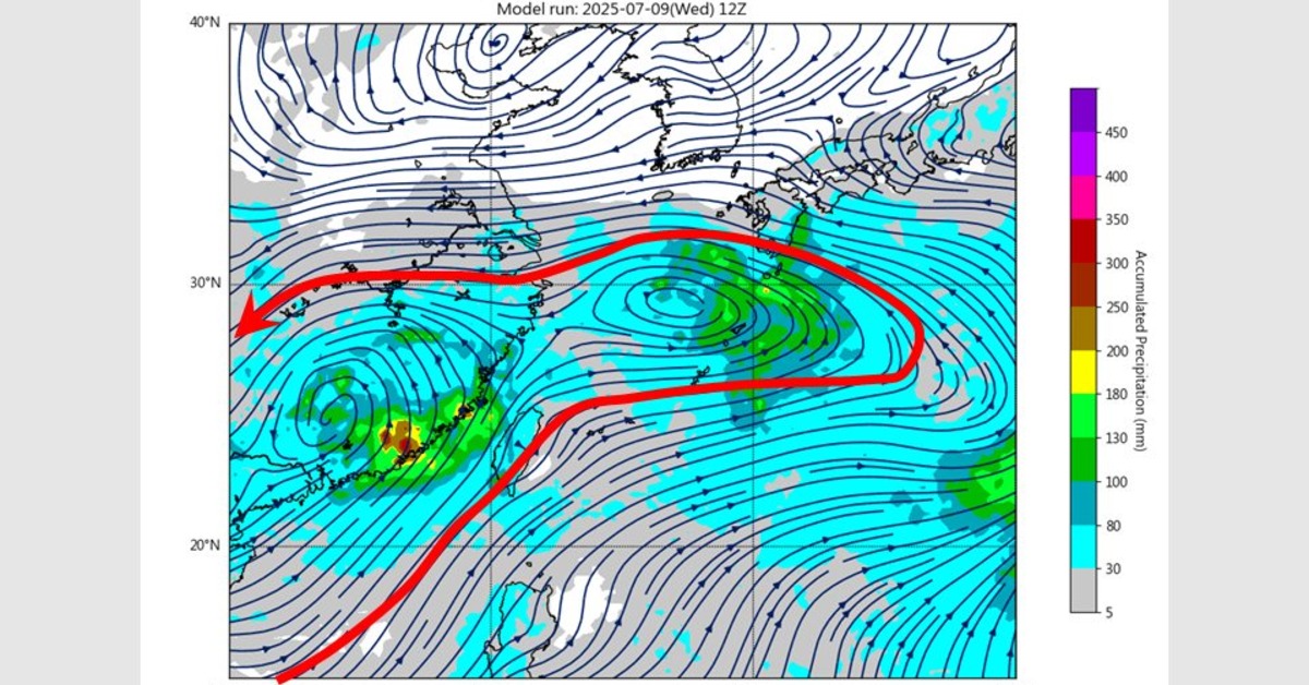 賈新興指出,自7月8日至10日早上6點為止,主要降雨集中在西半部地區,包括彰化、台中、南投、宜蘭、新竹與苗栗等地,部分地區甚至出現「像用倒的一樣」的強降雨現象。最大雨量集中在屏東瑪家鄉,三日累積雨量高達500毫米,霧台也接近480毫米,與丹娜絲颱風高峰時期的降雨相去不遠。這波豪雨與丹娜絲颱風有密切關聯,風災過後所遺留的低壓環境,加上西南風挾帶水氣,使得台灣西半部持續受雨勢籠罩。