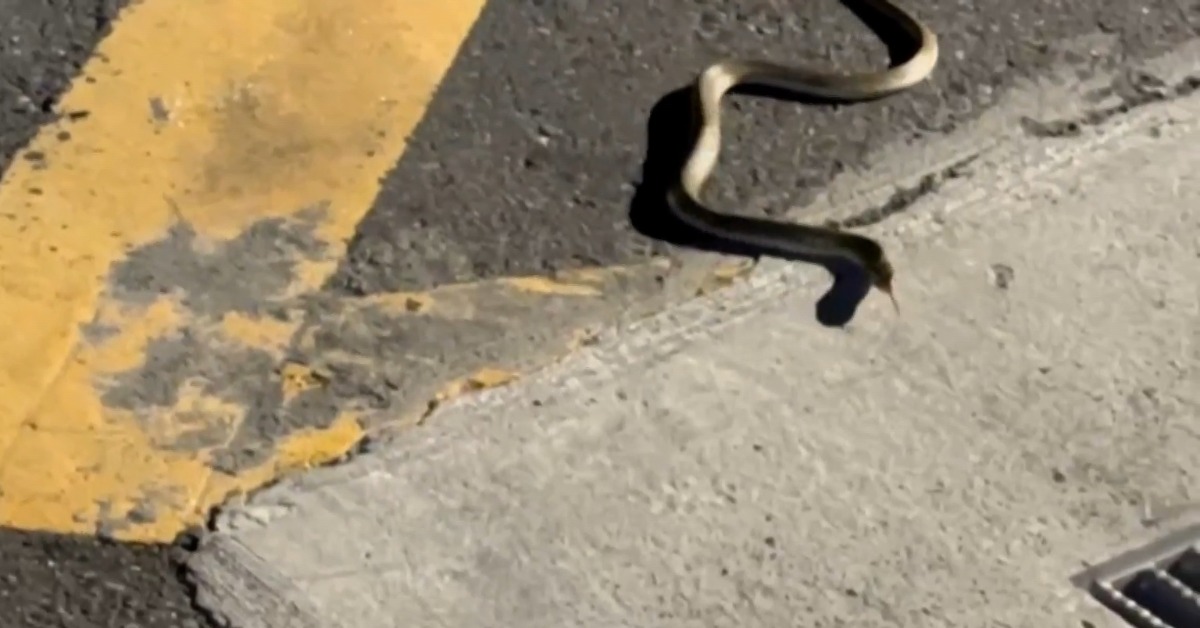 山中生態豐富,天氣一熱蛇也都跑出來了,《EBC東森新聞》回到現場直擊,立刻就有一隻蛇在路上亂竄,兩隻貓咪好奇圍在一旁,爪子一身,蛇瞬間跳起來,過沒多久就竄回下水道。附近住戶:「雨傘節龜殼花臭青母,臭青母比較大隻,我們現在習慣山頂是有蛇的環境,外來運動的人看到,他們會怕我們就是,我們要與牠共生嘛。」