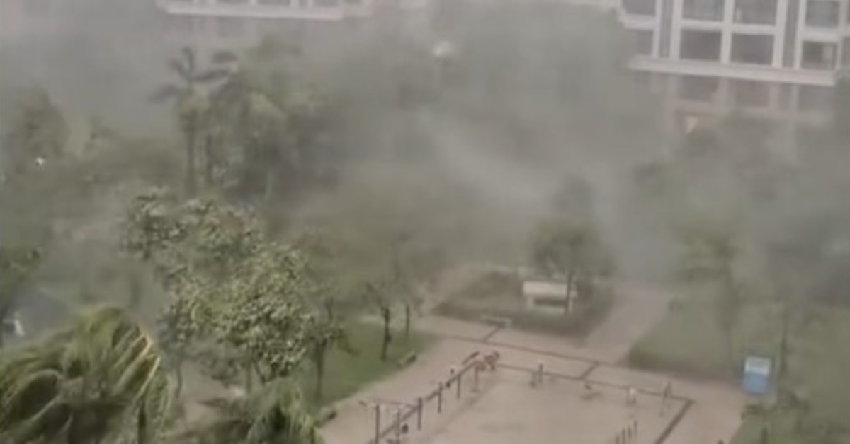 40年最強颱掃過海南三亞 飯店大門被強風吹爆