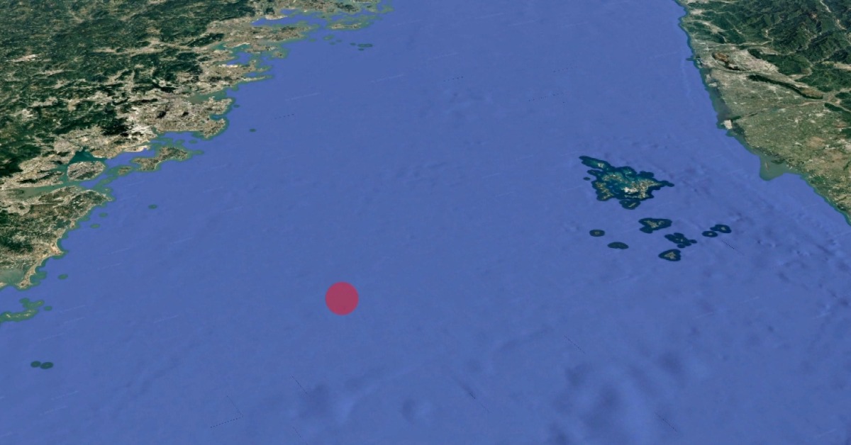 曝光船隻航跡圖顯示,這艘美國公務船現蹤澎湖西南方海域,航經七美海峽中線附近。(圖/翻攝自Google Map)