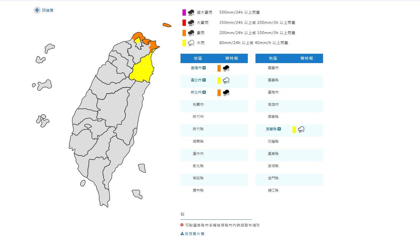 中央氣象署今(4)日22時15分,針對4縣市發布豪雨特報,提醒民眾留意雨勢。中央氣象署表示,東北季風影響,今(4)日晚至明(5)日基隆北海岸有局部大雨或豪雨,臺北市山區及宜蘭地區有局部大雨發生的機率。