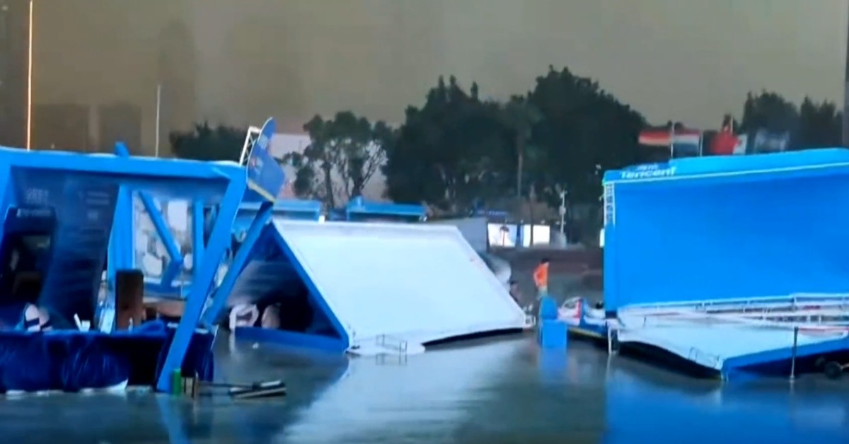 上海出現怪天氣,颳大風還下起冰雹。廣州更誇張,颳起12級強風,威力驚人。戶外攤位被吹了快兩層樓高,民眾嚇得拔腿狂奔。
