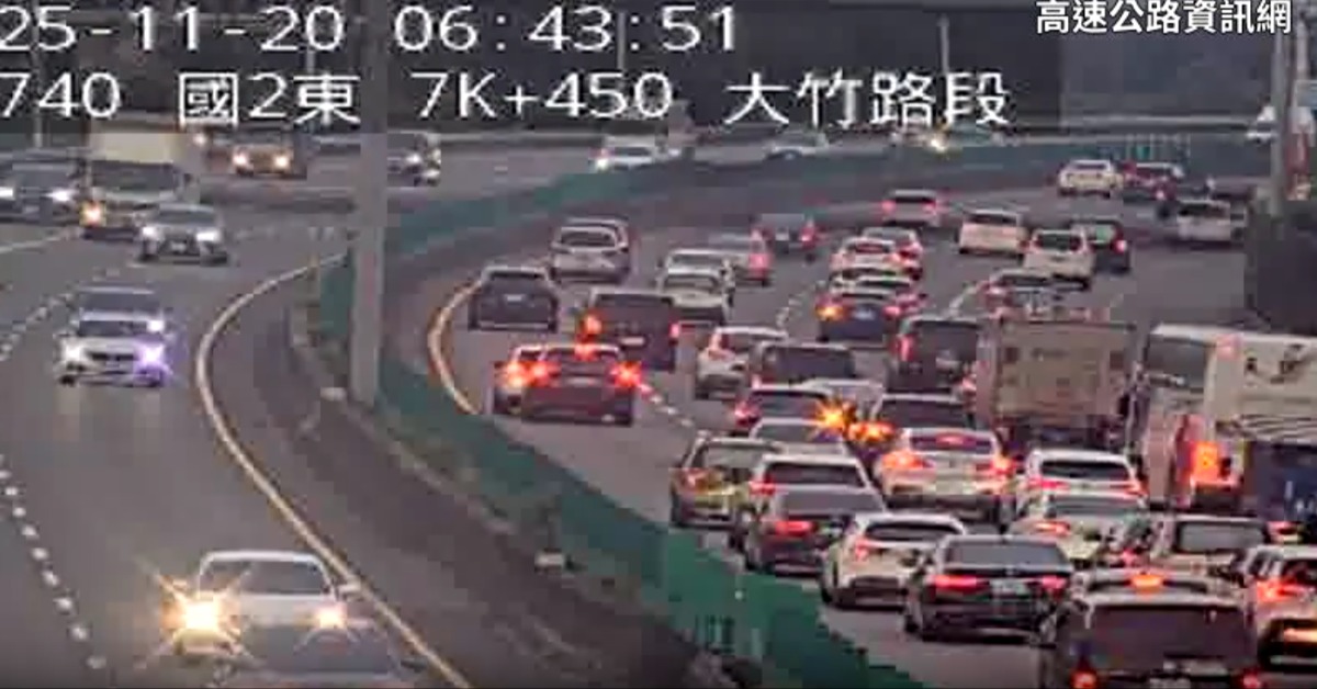 國道2號西向7公里處大竹-機場系統今(20日)清晨06:38發生車禍事故,發生嚴重回堵,事故路段時速只剩48公里
