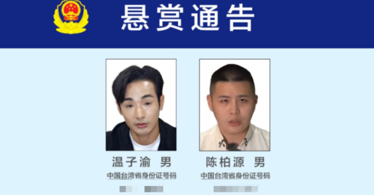 繼民進黨立委沈伯洋遭中國通緝之後,福建省泉州公安局發布懸賞通告,徵集台灣網紅溫子渝(網名「八炯」)、陳柏源(網名「閩南狼」)違法犯罪線索。