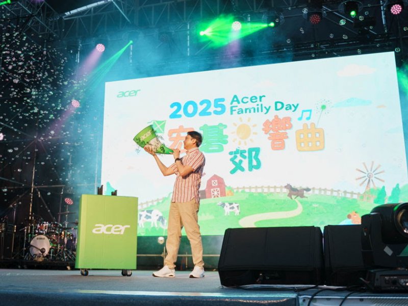 宏碁27日在桃園埔心牧場舉辦一年一度的家庭日盛會,今年以「宏碁郊響曲」為主題,邀請員工與眷屬親友齊聚同樂,透過自然探索、互動遊戲與公益活動,展現「多元、共融、永續」的核心精神。不僅夜晚的演唱會眾星雲集,現場活動更結合生態教育、社會參與與寵物友善等元素,讓不同世代都